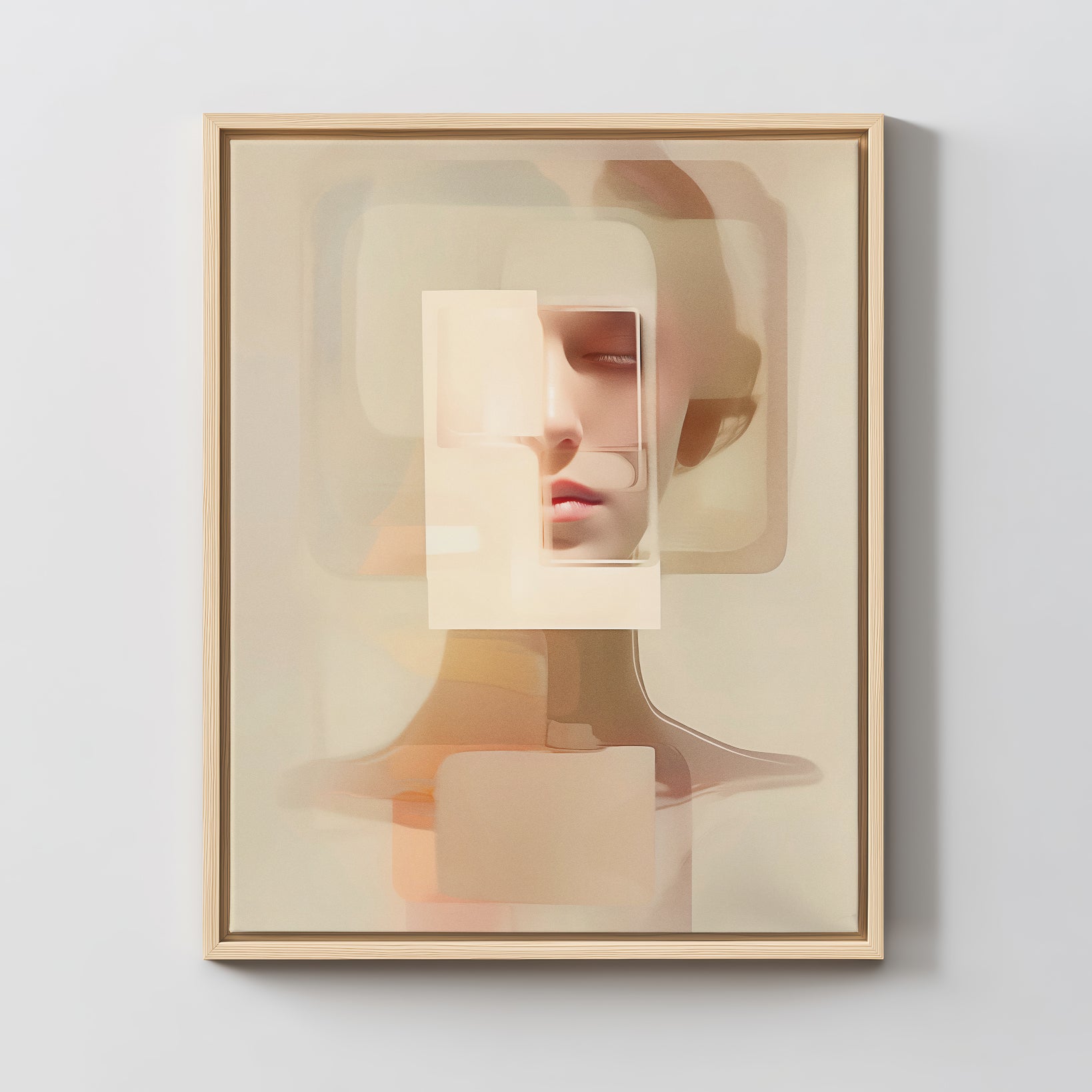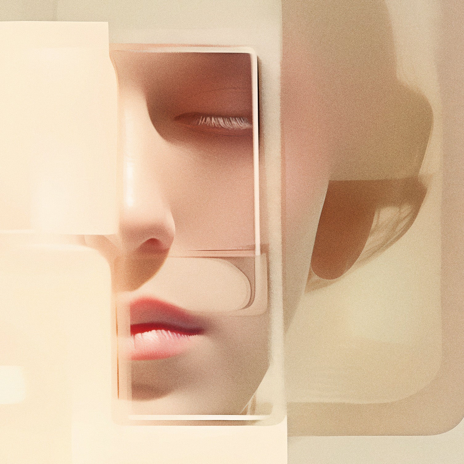 Zwischen Fläche und Fragment, Linie und Leere, entfalten sich Gesichter, die mehr verbergen als zeigen. In ihren melancholischen Blicken liegt eine stille Spannung - eine Sehnsucht, die nicht laut wird, sondern sich in geometrischen Umrissen verliert. Überlagerung, Transparenz, ein Öffnen des Raumes. Fragile Momente, eingefroren im Spiel von Form und Gefühl. Diese Serie ist eine Suche: nach Identität, nach Nähe, nach dem, was zwischen den Konturen bleibt.