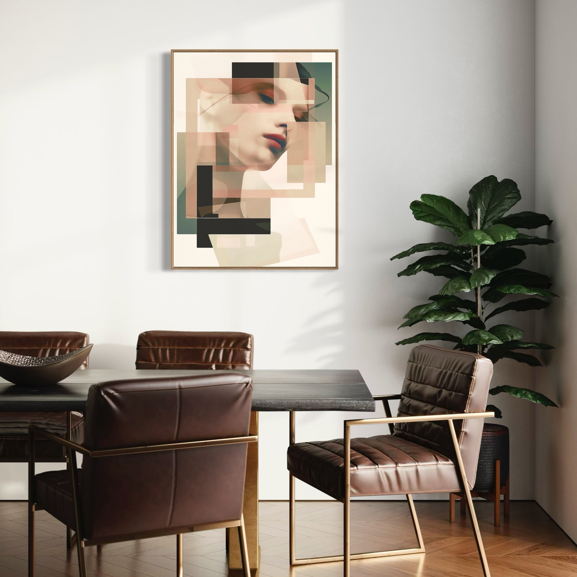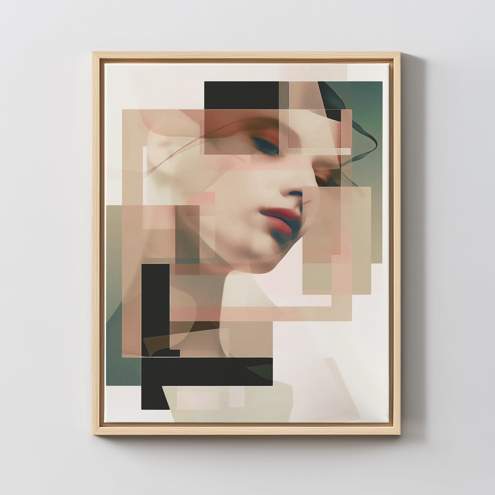 Zwischen Fläche und Fragment, Linie und Leere, entfalten sich Gesichter, die mehr verbergen als zeigen. In ihren melancholischen Blicken liegt eine stille Spannung - eine Sehnsucht, die nicht laut wird, sondern sich in geometrischen Umrissen verliert. Überlagerung, Transparenz, ein Öffnen des Raumes. Fragile Momente, eingefroren im Spiel von Form und Gefühl. Diese Serie ist eine Suche: nach Identität, nach Nähe, nach dem, was zwischen den Konturen bleibt.